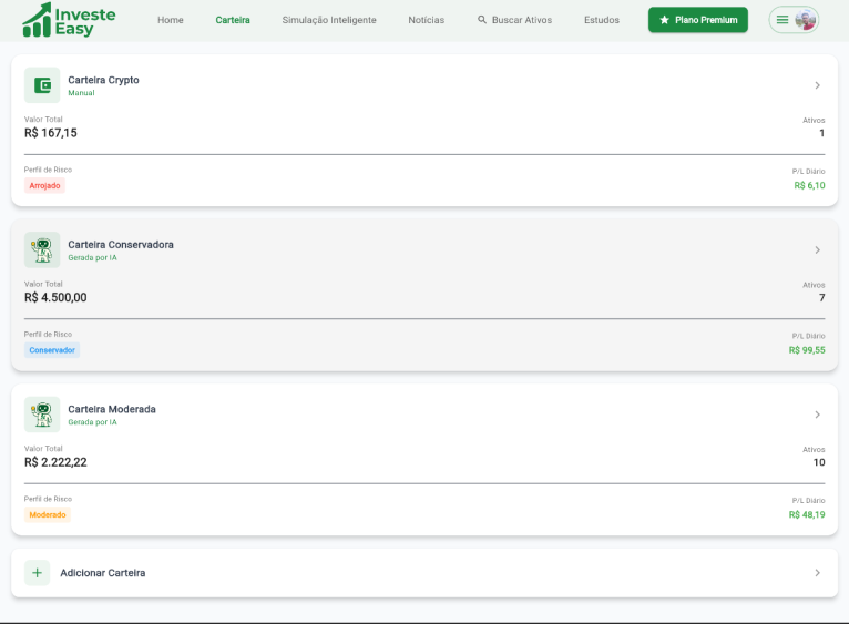 O assessor inteligente é surreal. Ele lê o mercado, ajusta a carteira e mostra o porquê de cada decisão. Nunca vi nada assim.