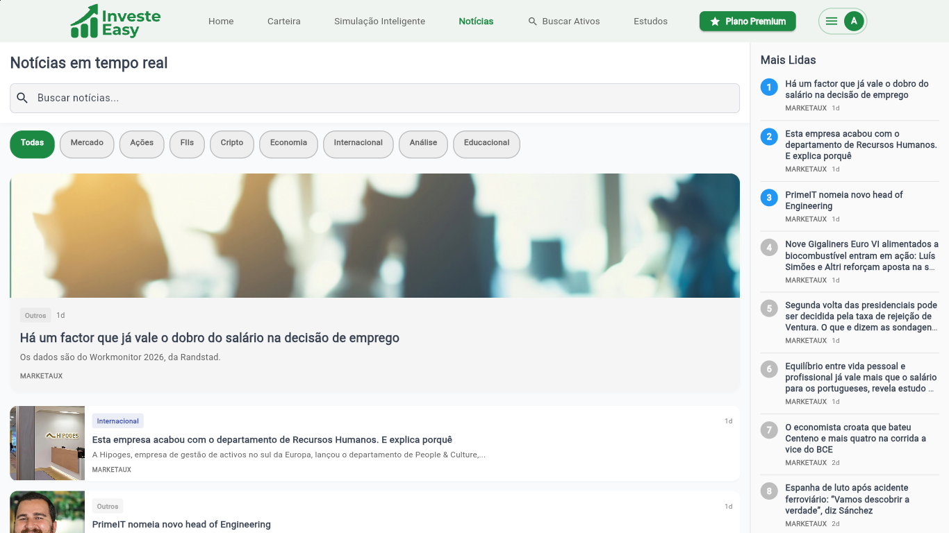 Fique por dentro do mercado com notícias rápidas, relevantes e sempre atualizadas - a informação certa no momento certo para mover seus investimentos com mais eficiência